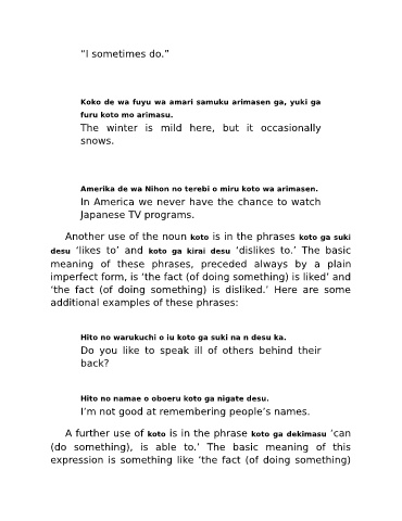 desu ‘likes to’ and koto ga kirai desu ‘dislikes to.’ The basic