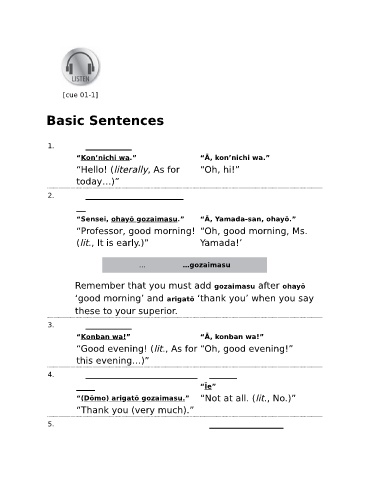 “Kon’nichi wa.” “Ā, kon’nichi wa.”