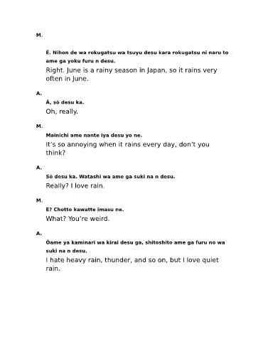 Ē. Nihon de wa rokugatsu wa tsuyu desu kara rokugatsu ni naru to