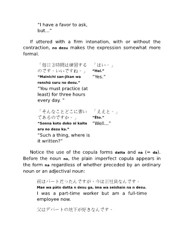 Before the noun no, the plain imperfect copula appears in
