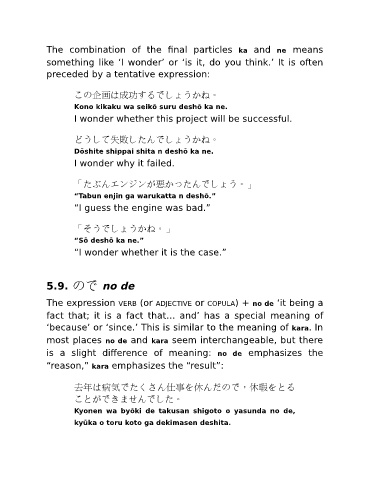 The expression VERB (or ADJECTIVE or COPULA) + no de ‘it being a