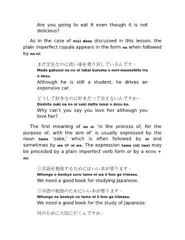 sometimes by wa or ni wa. The expression tame (ni) (wa) may