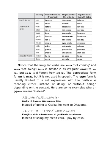 Notice that the irregular verbs are ko-zu ‘not coming’ and
