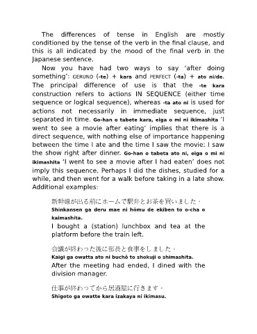 something’: GERUND (-te) + kara and PERFECT (-ta) + ato ni/de.