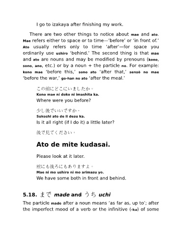 ordinarily use ushiro ‘behind.’ The second thing is that mae