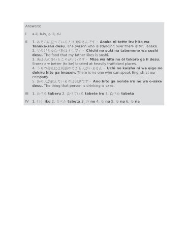 II 1. あそこに立っている人は田中さんです。 Asoko ni tatte iru hito wa