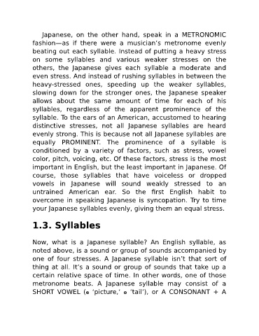 distinctive stresses, not all Japanese syllables are heard