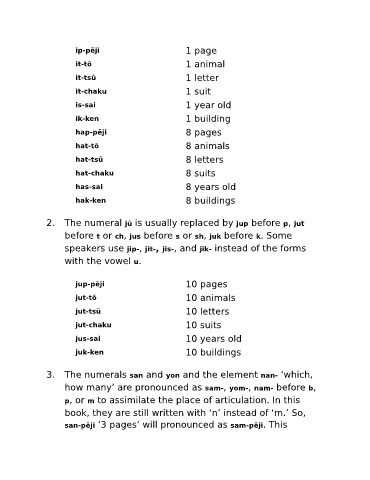san-pēji ‘3 pages’ will pronounced as sam-pēji. This