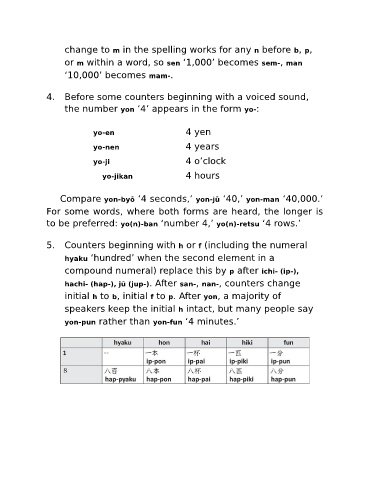 or m within a word, so sen ‘1,000’ becomes sem-, man