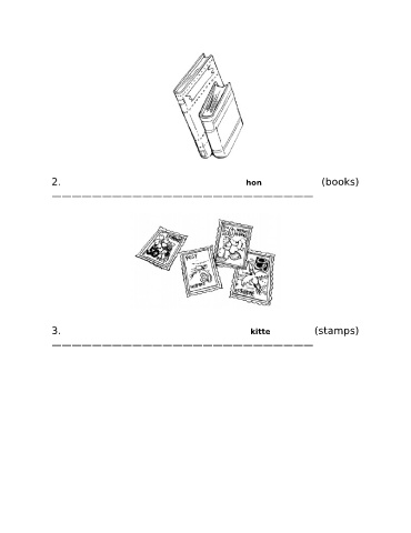 2. hon (books) —————————————————————————— 3. kitte (stamps) ——————————————————————————