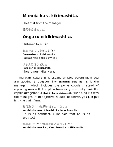 manager,’ which includes the polite copula, instead of