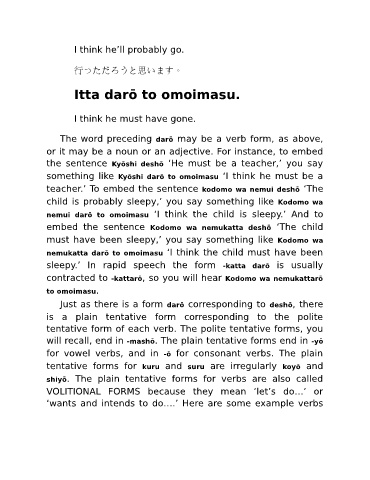 will recall, end in -mashō. The plain tentative forms end in -yō