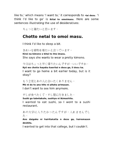 like to,’ which means ‘I want to,’ it corresponds to -tai desu. ‘I