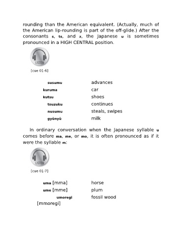 consonants s, ts, and z, the Japanese u is sometimes