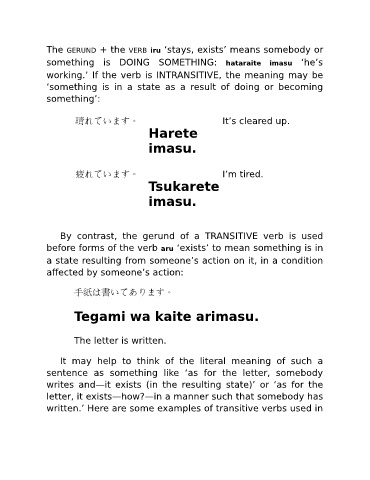 working.’ If the verb is INTRANSITIVE, the meaning may be