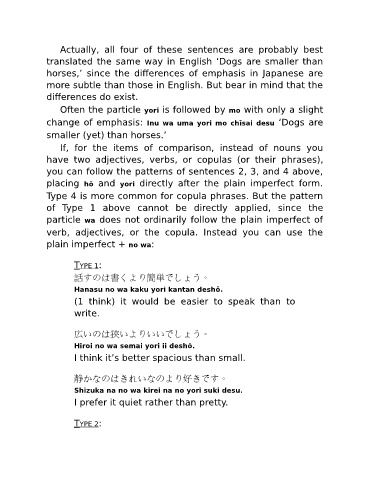 change of emphasis: Inu wa uma yori mo chīsai desu ‘Dogs are