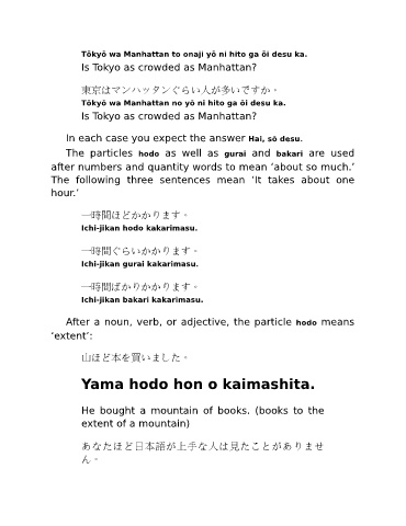 After a noun, verb, or adjective, the particle hodo means
