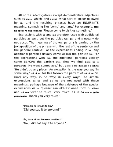 ikimashita ‘He went someplace,’ but Doko e mo ikimasen deshita