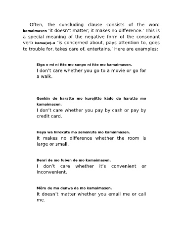kamaimasen ‘it doesn’t matter; it makes no difference.’ This is