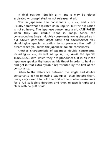 is not so heavy. The Japanese consonants are UNASPIRATED