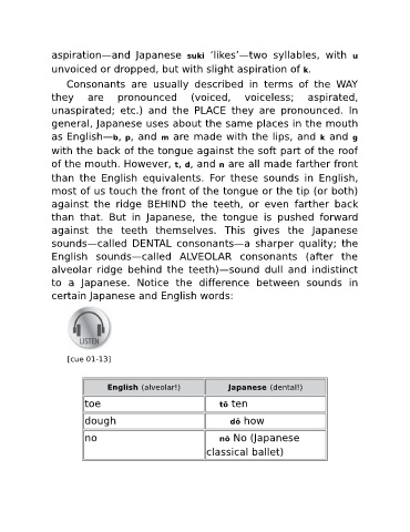 aspiration—and Japanese suki ‘likes’—two syllables, with u