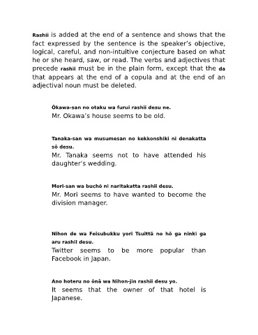 Rashii is added at the end of a sentence and shows that the