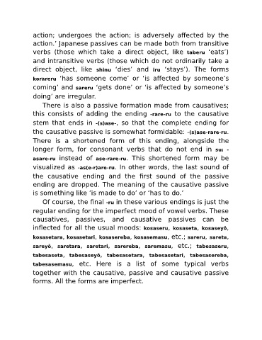 the causative passive is somewhat formidable: -(s)ase-rare-ru.