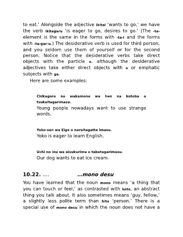 to eat.’ Alongside the adjective ikitai ‘wants to go,’ we have