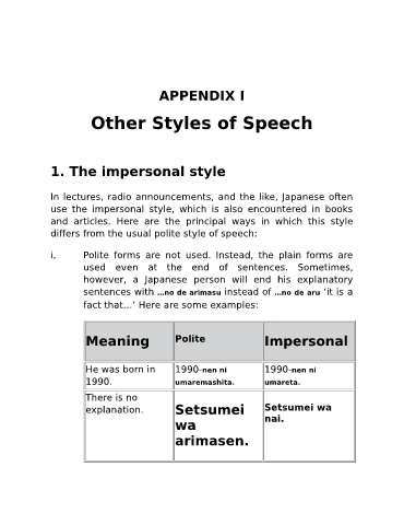 Other Styles of Speech