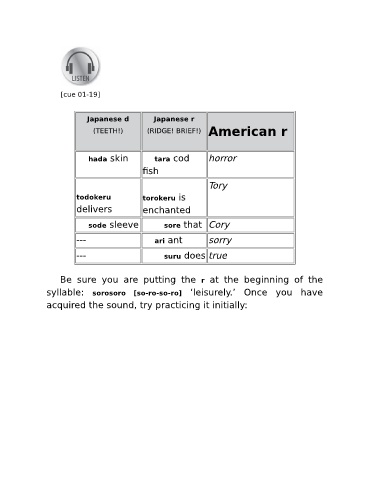 syllable: sorosoro [so-ro-so-ro] ‘leisurely.’ Once you have