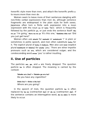 no yo ‘I’m going,’ Kore na no yo ‘It’s this one,’ Tadaima kita no? ‘Did