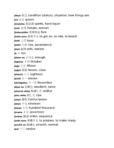 jōkyō 状況 condition (status), situation, how things are