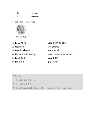 III. Circle the one you hear.