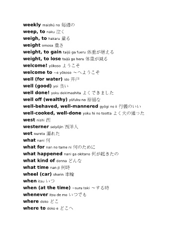 weight, to lose taijū ga heru 体重が減る