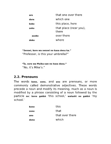 particle no: kono gakkō ‘this school,’ watashi no gakkō ‘my