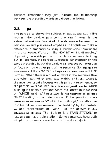 particles—remember they just indicate the relationship