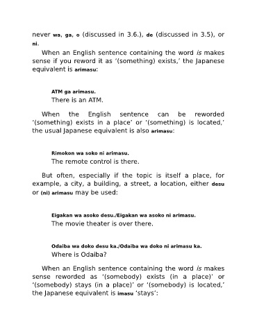 never wa, ga, o (discussed in 3.6.), de (discussed in 3.5), or