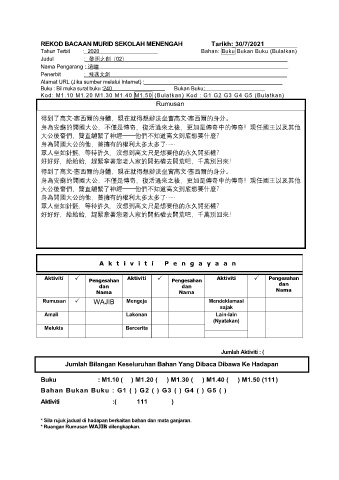 REKOD BACAAN MURID SEKOLAH MENENGAH Tarikh: 30/7/2021