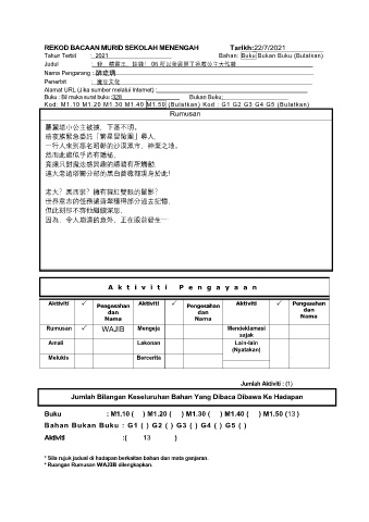 REKOD BACAAN MURID SEKOLAH MENENGAH Tarikh:22/7/2021