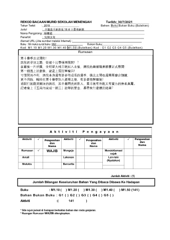 REKOD BACAAN MURID SEKOLAH MENENGAH Tarikh: 30/7/2021