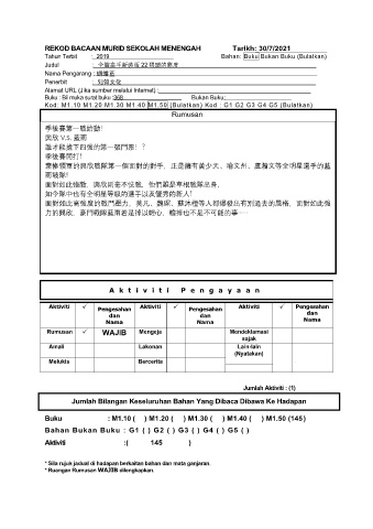 REKOD BACAAN MURID SEKOLAH MENENGAH Tarikh: 30/7/2021