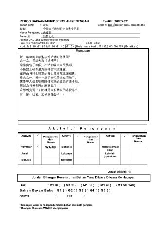 REKOD BACAAN MURID SEKOLAH MENENGAH Tarikh: 30/7/2021