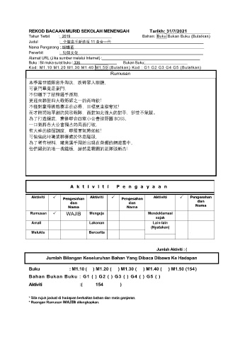 REKOD BACAAN MURID SEKOLAH MENENGAH Tarikh: 31/7/2021