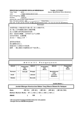 REKOD BACAAN MURID SEKOLAH MENENGAH Tarikh: 31/7/2021