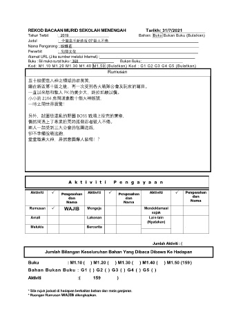 REKOD BACAAN MURID SEKOLAH MENENGAH Tarikh: 31/7/2021