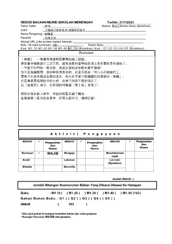 REKOD BACAAN MURID SEKOLAH MENENGAH Tarikh: 31/7/2021