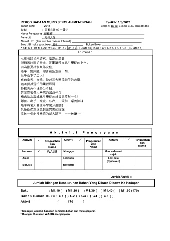 REKOD BACAAN MURID SEKOLAH MENENGAH Tarikh: 1/8/2021