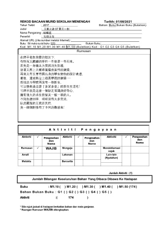 REKOD BACAAN MURID SEKOLAH MENENGAH Tarikh: 01/08/2021