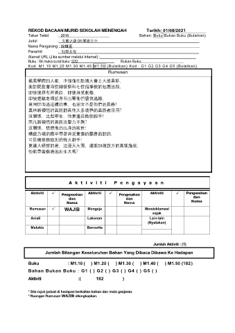 REKOD BACAAN MURID SEKOLAH MENENGAH Tarikh: 01/08/2021
