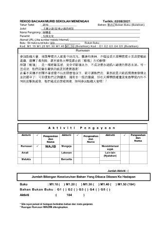 REKOD BACAAN MURID SEKOLAH MENENGAH Tarikh: 02/08/2021